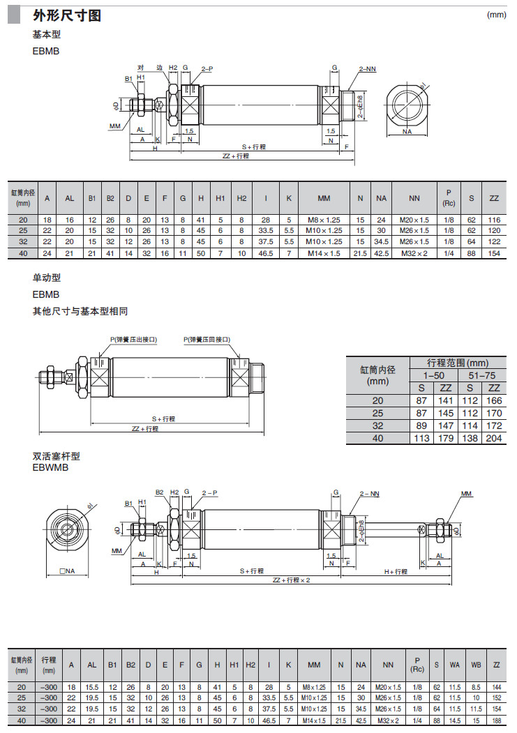 EBB20,EBWB20,EBMB20,EBWMB20,EBB32,EBWB32,EBMB32,EBWMB32,不銹鋼缸筒