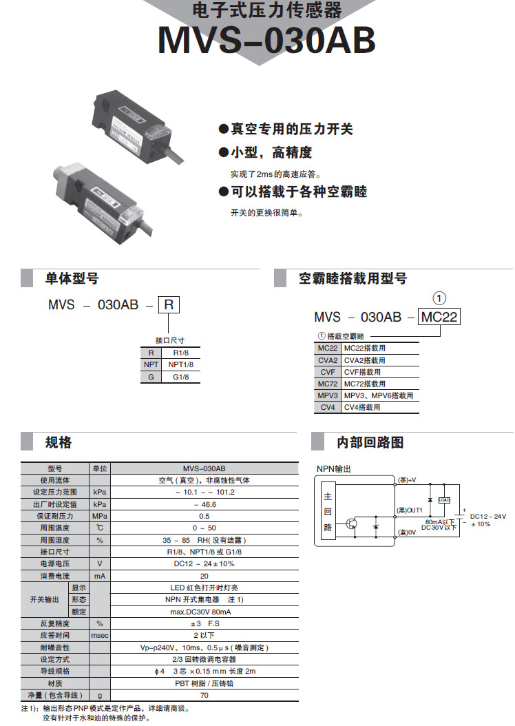 MVS-030AB-R,MVS-030AB-NPT,MVS-030AB-G,