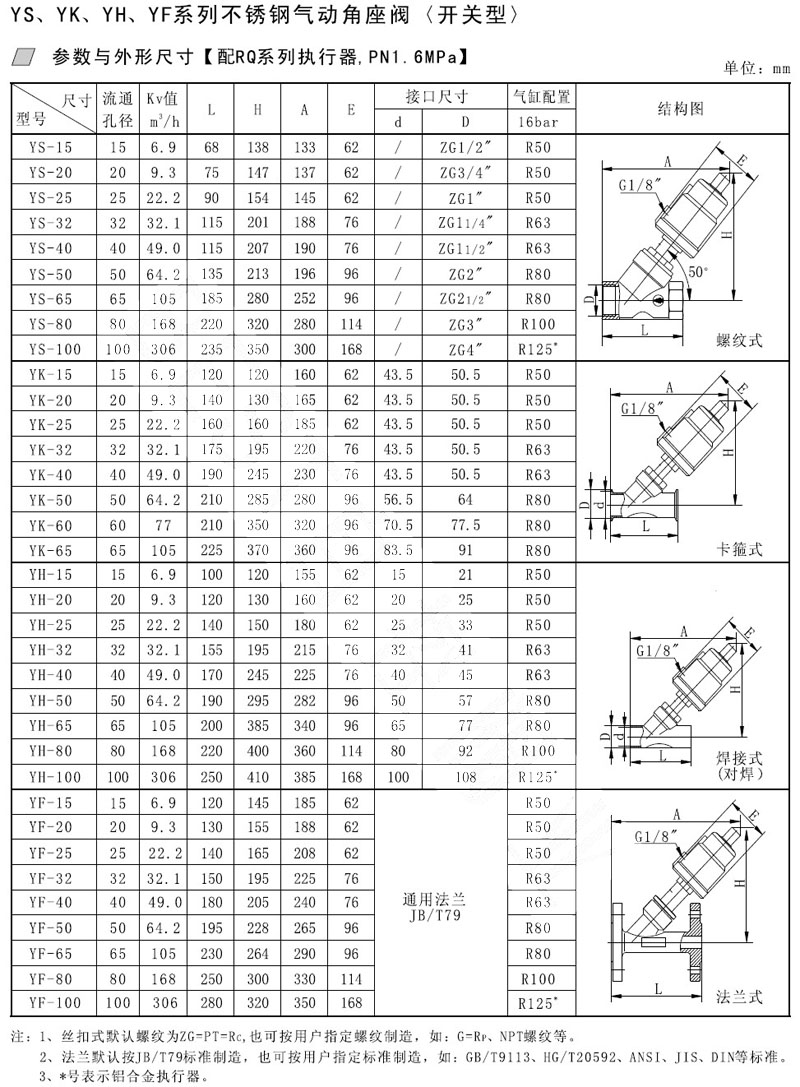 YS-15,YS-20,YK-25,YK-32,YH-40,YH-50,YF-65,YF-80,不銹鋼Y型角座氣動(dòng)閥