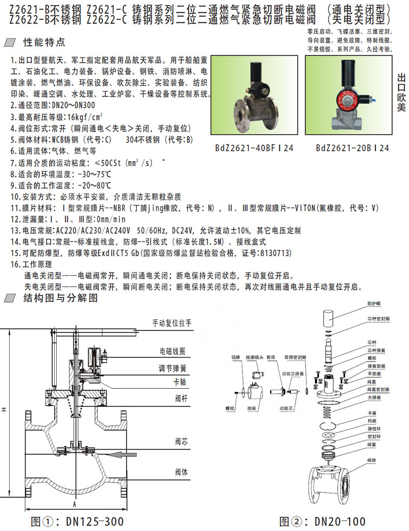 Z2621-20B,Z2621-32BC,Z2621-40BF,Z2621-50BF,Z2621-65BFC,防爆燃氣緊急切斷閥 |