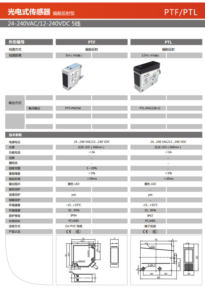 PTF-PM5SK,PTL-PM12SK-D,光電式傳感器