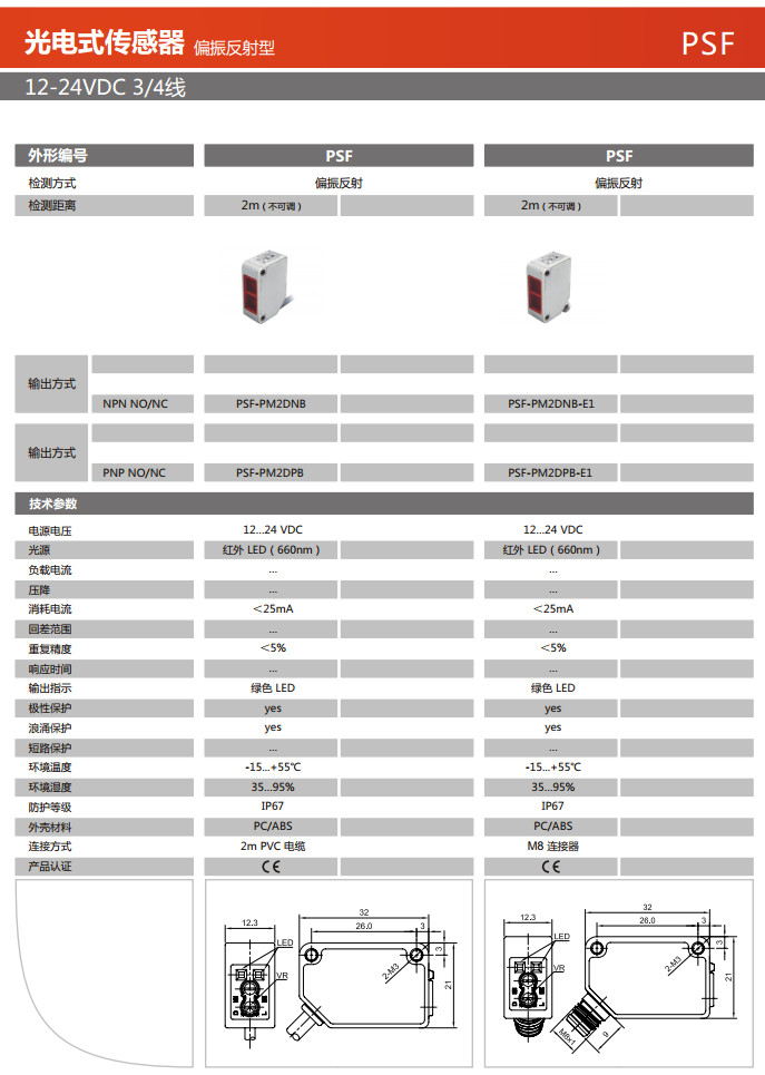 PSF-PM2DNB,PSF-PM2DPB,PSF-PM2DNB-E1,PSF-PM2DPB-E1,光電式傳感器