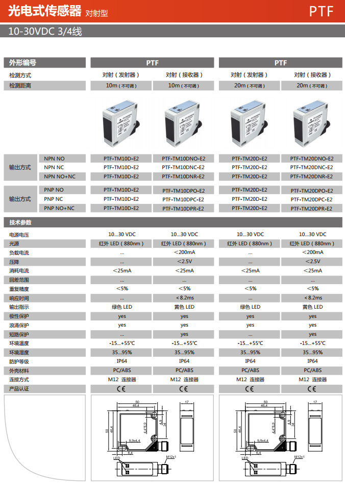 PTF-TM10D-E2,PTF-TM10DNO-E2,PTF-TM10DNC-E2,PTF-TM20D-E2,PTF-TM20DNO-E2,PTF-TM20DNC-E2,光電式傳感器 |