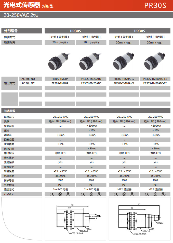 PR30S-TM20A,PR30S-TM20ATO,PR30S-TM20ATC,PR30S-TM20A-E2,PR30S-TM20ATO-E2,PR30S-TM20ATC-E2,光電式傳感器
