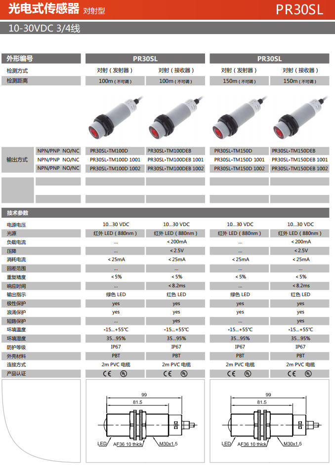 PR30SL-TM100D,PR30SL-TM100DEB,PR30SL-TM150D,PR30SL-TM150DEB,光電式傳感器 |