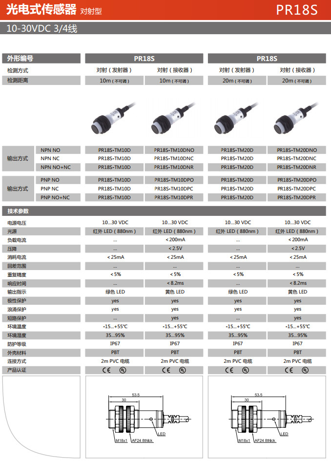PR18S-TM10D,PR18S-TM20D,PR18S-TM10DNO,PR18S-TM10DNC,PR18S-TM10DNR,PR18S-TM10DPO,光電式傳感器