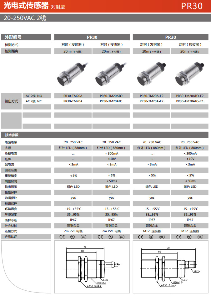 PR30-TM20A,PR30-TM20ATO,PR30-TM20ATC,PR30-TM20A-E2,PR30-TM20ATO-E2,PR30-TM20ATC-E2,光電式傳感器 |