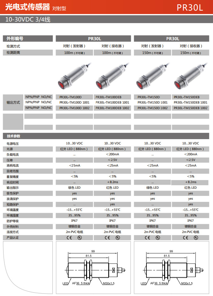 PR30L-TM100D,PR30L-TM100DEB,PR30L-TM150D,PR30L-TM150DEB,光電式傳感器