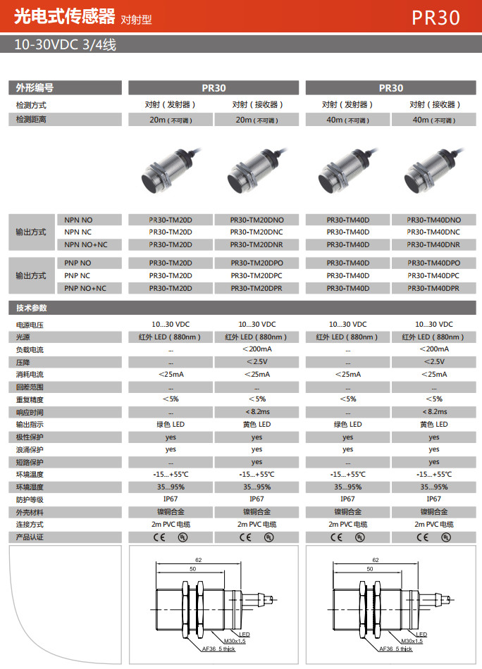 PR30-TM20D,PR30-TM20DNO,PR30-TM20DNC,PR30-TM20DNR,PR30-TM20DPO,PR30-TM20DPC,光電式傳感器 |