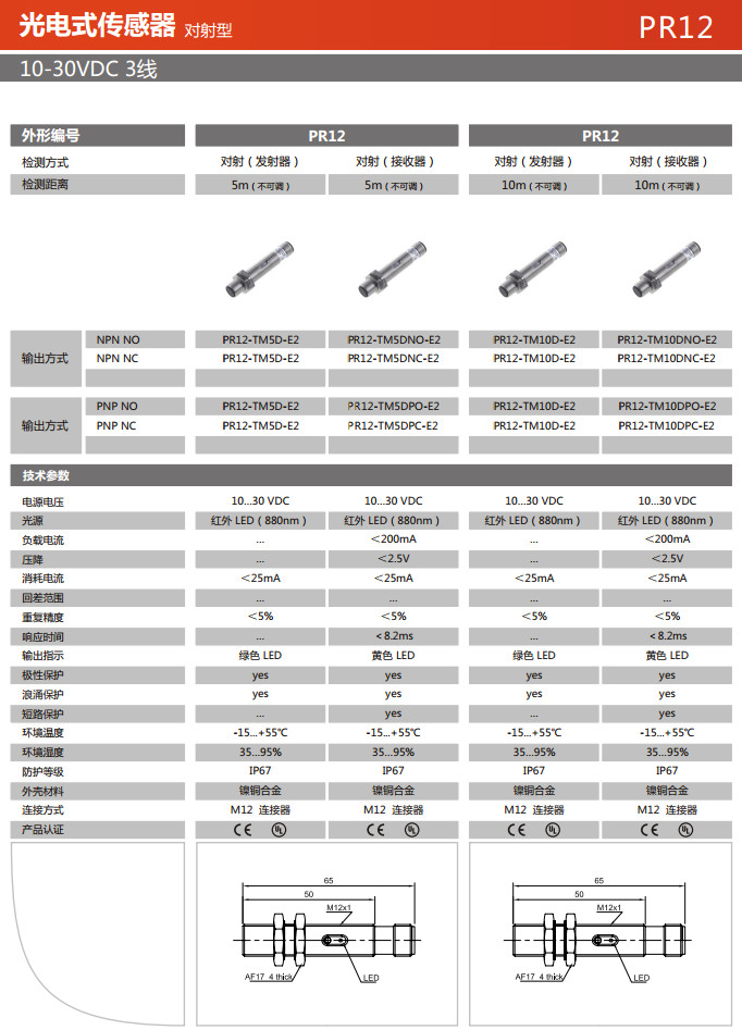PR12-TM5D-E2,PR12-TM5DNO-E2,PR12-TM5DNC-E2,PR12-TM5DPO-E2,PR12-TM5DPC-E2,光電式傳感器