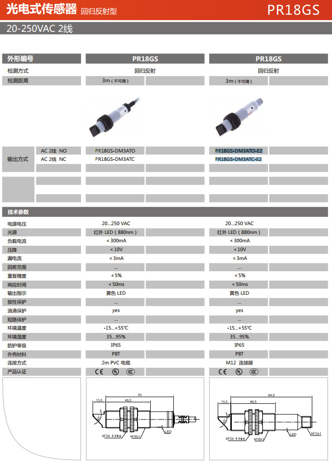 PR18GS-DM3ATO,PR18GS-DM3ATC,PR18GS-DM3ATO-E2,PR18GS-DM3ATC-E2,光電式傳感器