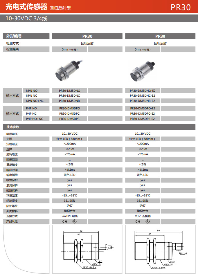 PR30-DM5DNO,PR30-DM5DNC,PR30-DM5DNR,PR30-DM5DPO,PR30-DM5DPC,PR30-DM5DPR,PR30-DM5DNO-E2,光電式傳感器