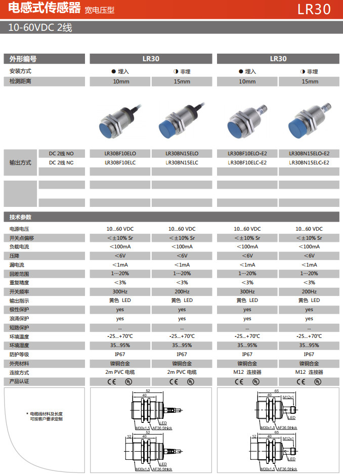 LR30BF10ELO,LR30BF10ELC,LR30BN15ELO,LR30BN15ELC,LR30BF10ELO-E2,LR30BF10ELC-E2,LR30BN15ELO-E2,LR30BN15ELC-E2,電感式傳感器