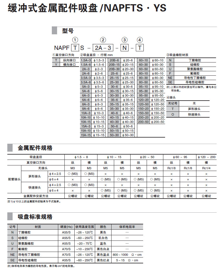 APFTS-1.5A,NAPFTS-2A,NAPFTS-25,NAPFYS-8A,NAPFYS-25,NAPFYS-2A,吸盤