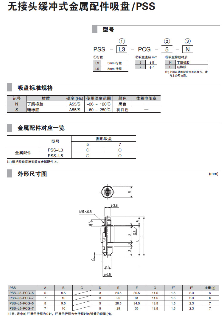 PSS-L3-PCG-5,PSS-L3-PCG-7,PSS-L5-PCG-5,PSS-L5-PCG-7,吸盤
