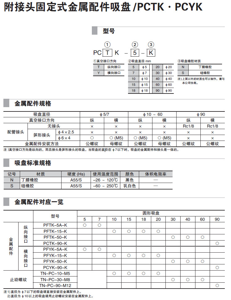 PCTK-5,PCTK-7,PCTK-10,PCTK-15,PCTK-18,PCYK-20,PCYK-30,PCYK-40,吸盤 PCTK-20,PCTK-30,PCTK-40,PCTK-60,PCTK-90,PCYK-5,PCYK-7,PCYK-10,