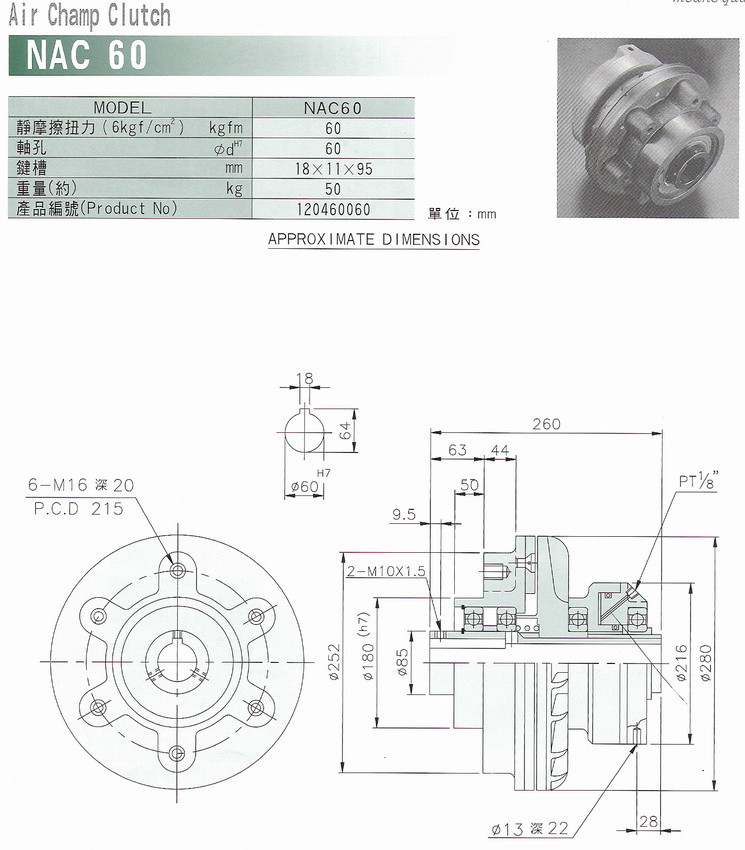 NAC5,NAC10,NAC40,NAC60,空壓通軸式離合器