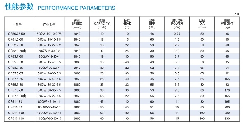 CP50.75-50,CP51.5-50,CP52.2-50,CP53.7-50,CP55.5-50,CP53.7-65,CP55.5-65,CP57.5-65,沉水式污物(泥)泵 |
