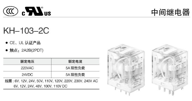 KH-103-2C,KH-103-2CL,KH-103-2CP,KH-103-2CPL,Koino中間繼電器 |