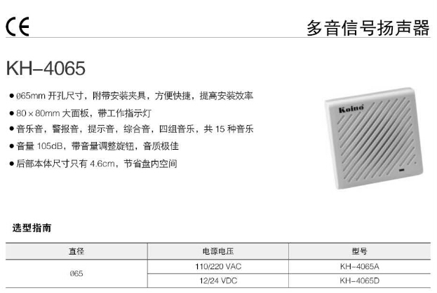 KH-4065A,KH-4065D,Koino 多音信號(hào)揚(yáng)聲器