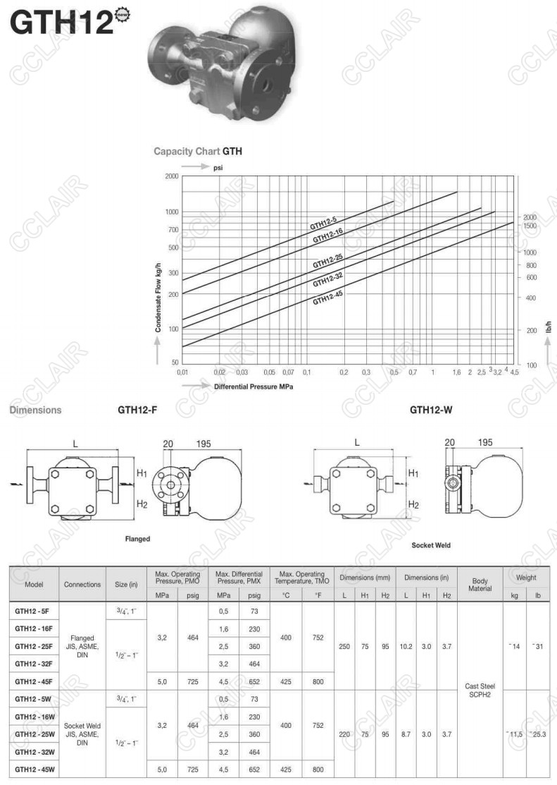 GTH12-5F,GTH12-16F,GTH12-25F,GTH12-32F,GTH12-45F,GTH12-5W,GTH12-16W,miyawaki浮球式蒸汽疏水閥 |