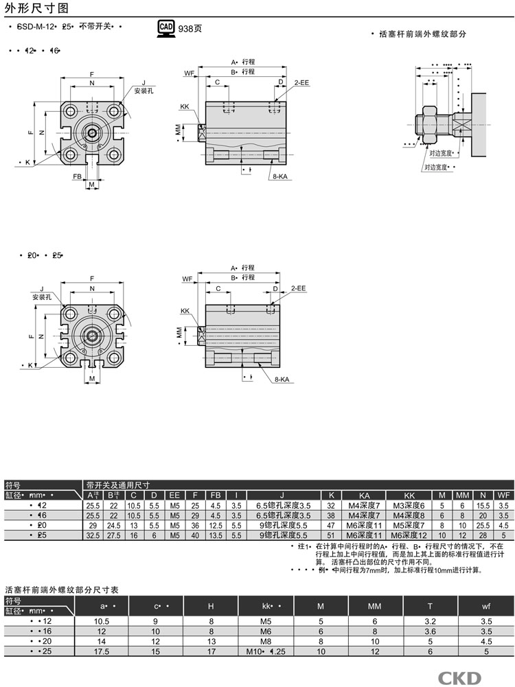 SSD-M-12-5,SSD-ML-12-5,SSD-ML1-12-5,SSD-ML-63-50,SSD-M-63-50,CKD超緊湊型氣缸