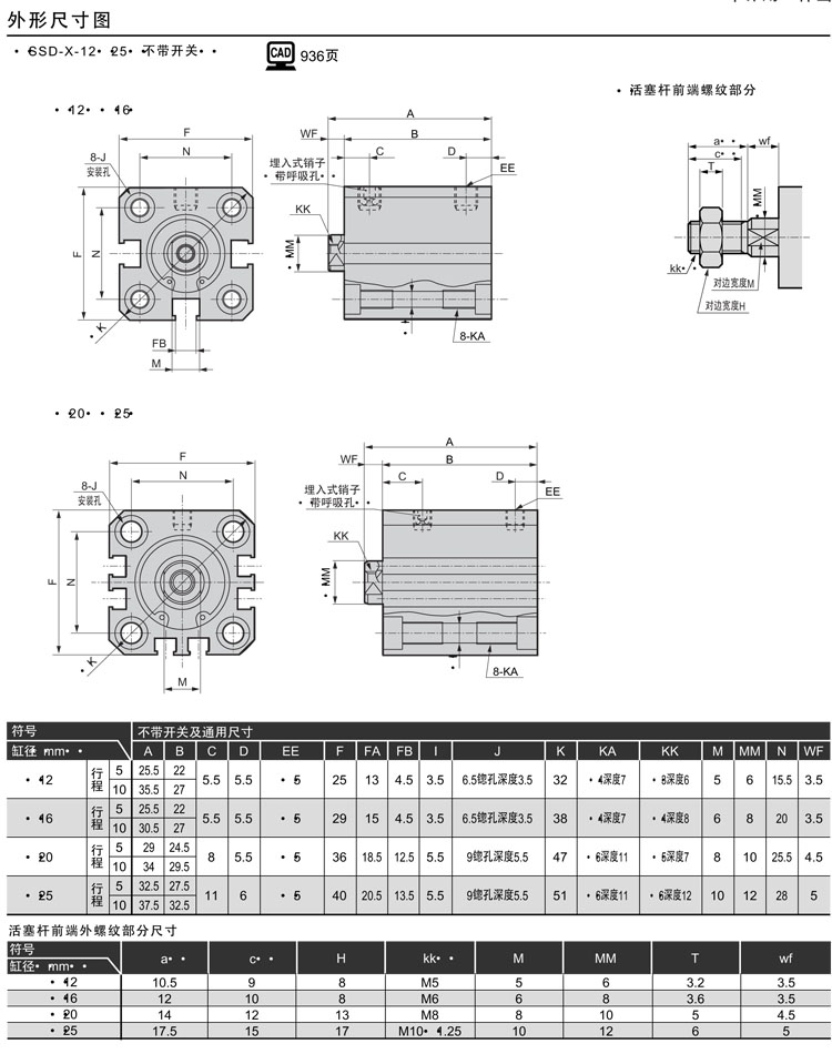SSD-X-12-5,SSD-XL-12-5,SSD-XL1-12-5,SSD-Y-12-5,SSD-YL-12-5,SSD-YL1-12-5,CKD超緊湊型氣缸