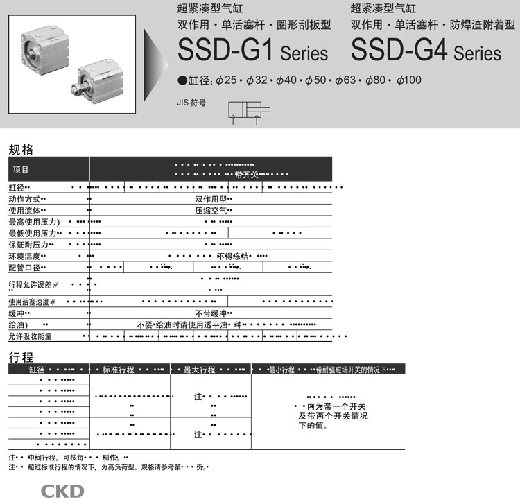 SSD-G1-25-5,SSD-G1L-25-25,SSD-G4-25-5,SSD-G4L-25-40,SSD-G4L-100-50,CKD超緊湊型氣缸