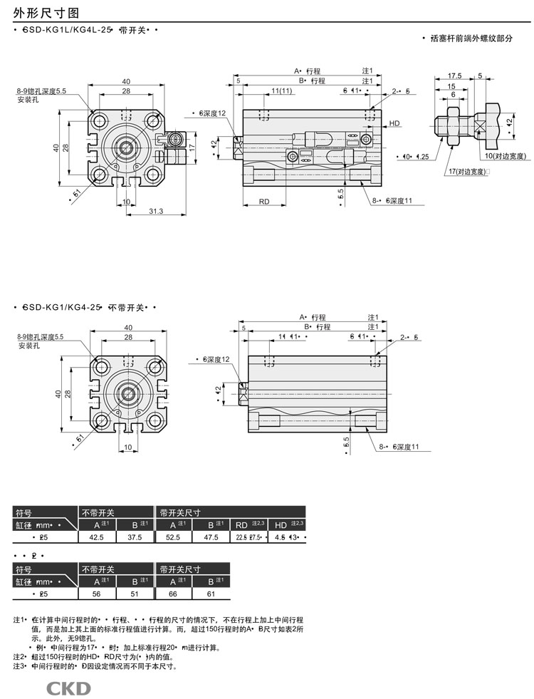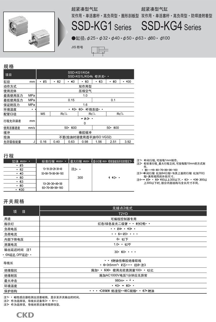 SSD-KG1-25-10,SSD-KG1L-25-10,SSD-KG4-25-10,SSD-KG4L-25-10,CKD超緊湊型氣缸