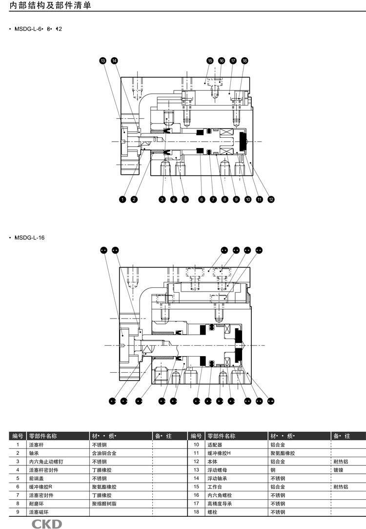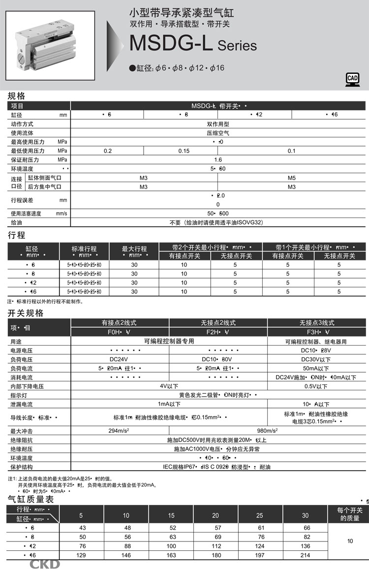 MSDG-L-6,MSDG-L-10,MSDG-L-15,MSDG-L-20,MSDG-L-25,MSDG-L-30,CKD緊湊型氣缸