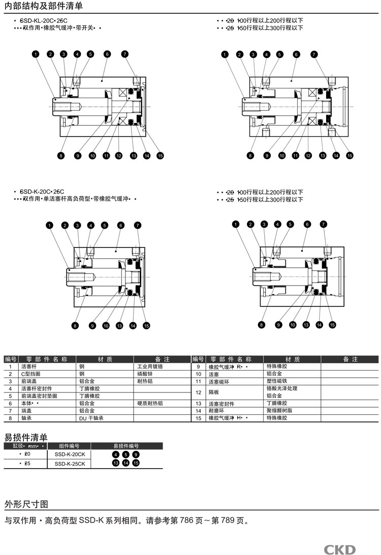 SSD-K-20,SSD-K-25,SSD-K-32,SSD-K-40,SSD-K-50,SSD-K-63,SSD-K-80,SSD-K-100,CKD超緊湊型氣缸