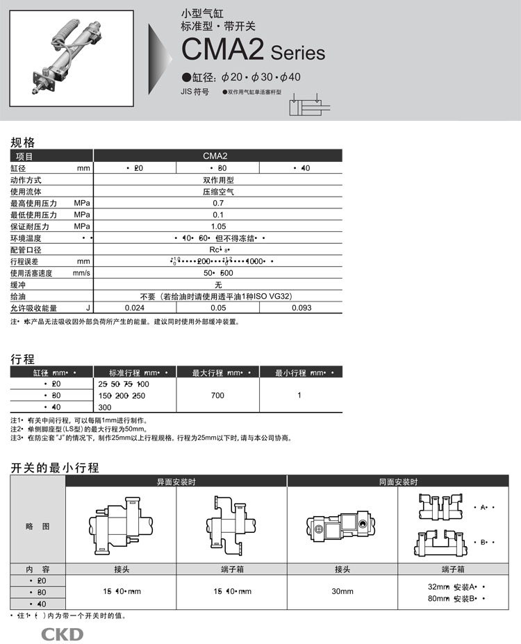 CMA2-00,CMA2-LB,CMA2-LS,CMA2-FA,CMA2-FB,CMA2-CA,CMA2-CB,CMA2-TB,CMA2-TA,CKD小型氣缸