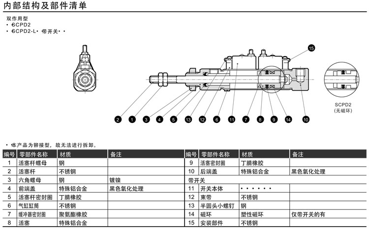 SCPD2-00,SCPD2-LS,SCPD2-FA,SCPD2-CB,SCPD2-L-00,SCPD2-L-LS,SCPD2-L-FA,SCPD2-L-CB,CKD筆型氣缸
