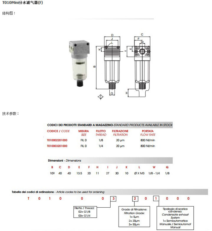 T010002201000,T010003201000,AIGNEP分水濾氣器