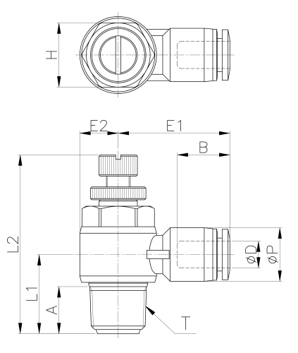 | Model | ¢D | ¢P | T | L1 | L2/MIN | L2/MAX | E1 | E2 | A | B | H(Hex) | WEIGHT(g) | BOX(EA) |