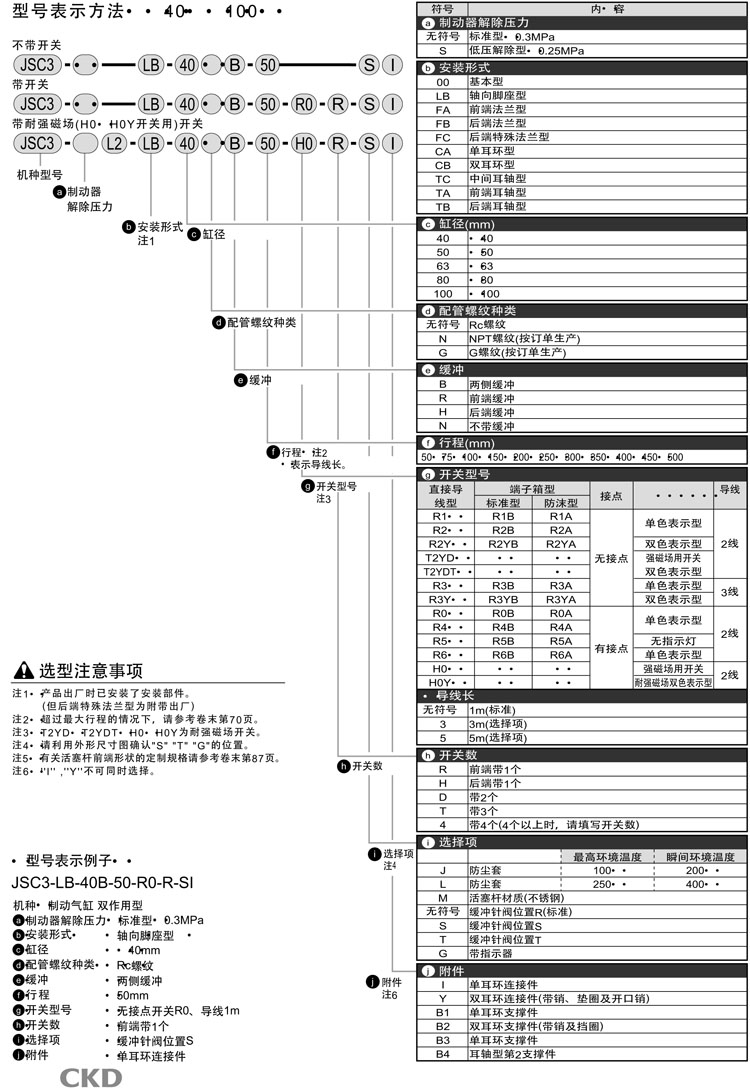 JSC3-00-40B-50,JSC3-S-00-40B-50,JSC3-SL2-00-40B-50,CKD制動(dòng)氣缸