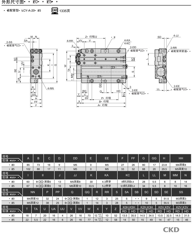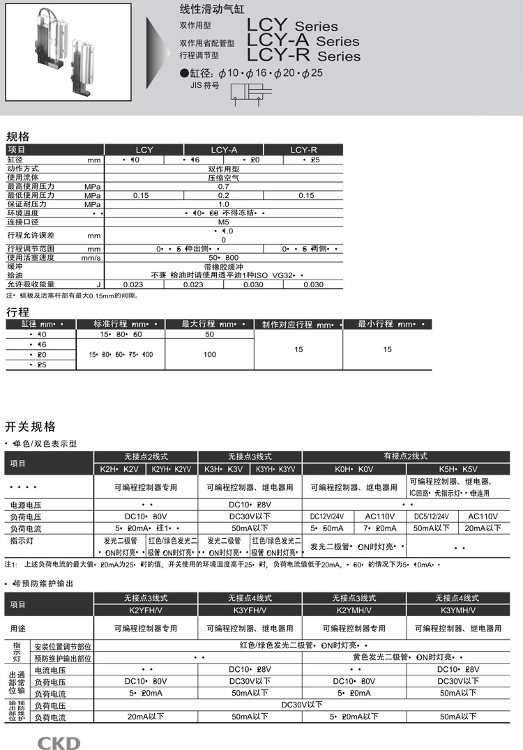 LCY-10,LCY-16,LCY-20,LCY-Y-25,LCY-25,LCY-A-10,LCY-A-16,LCY-A-20,CKD線性滑動(dòng)氣缸