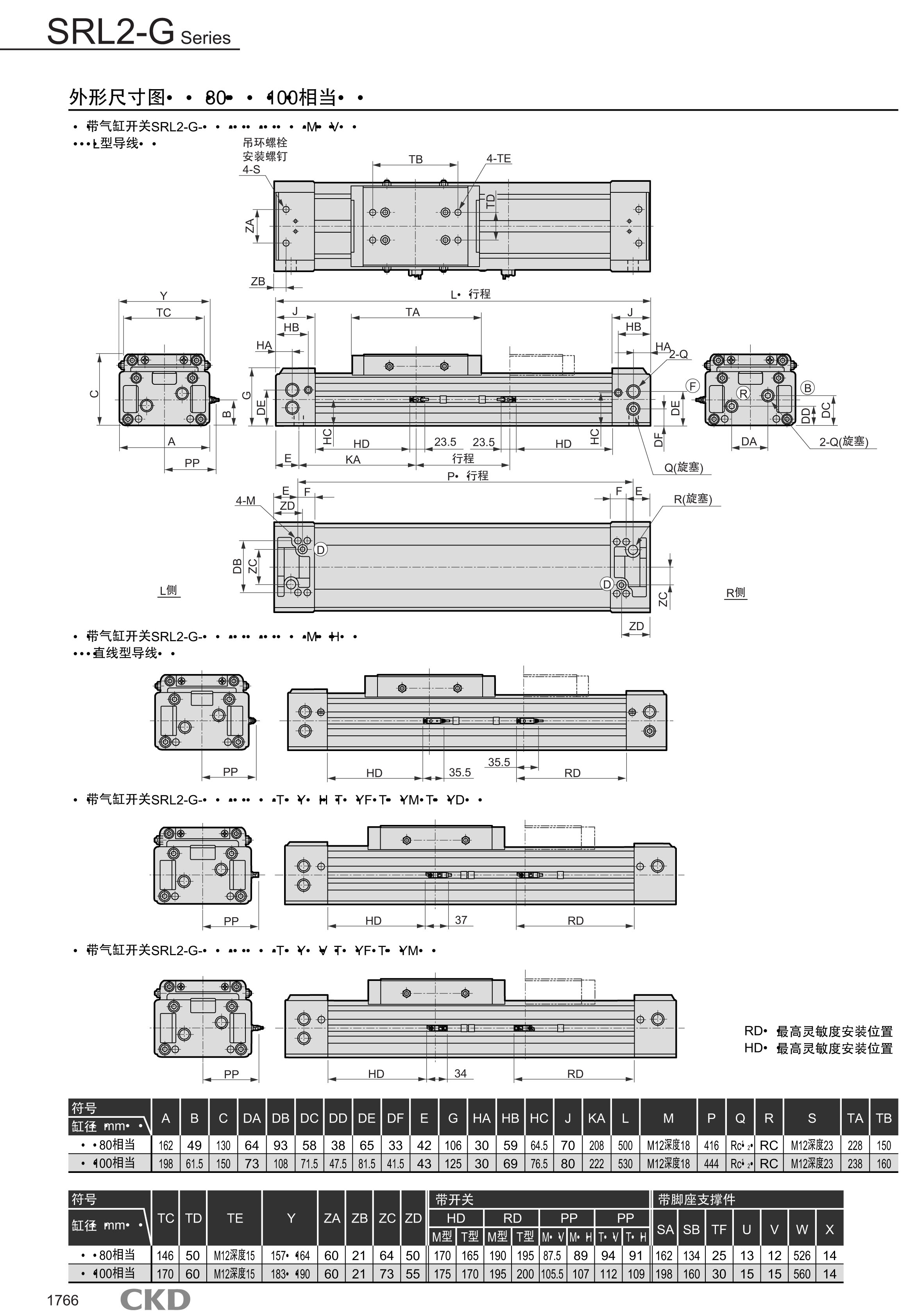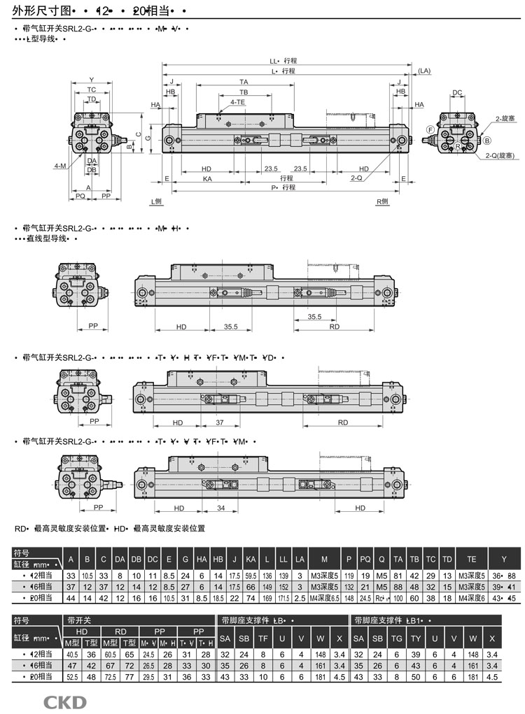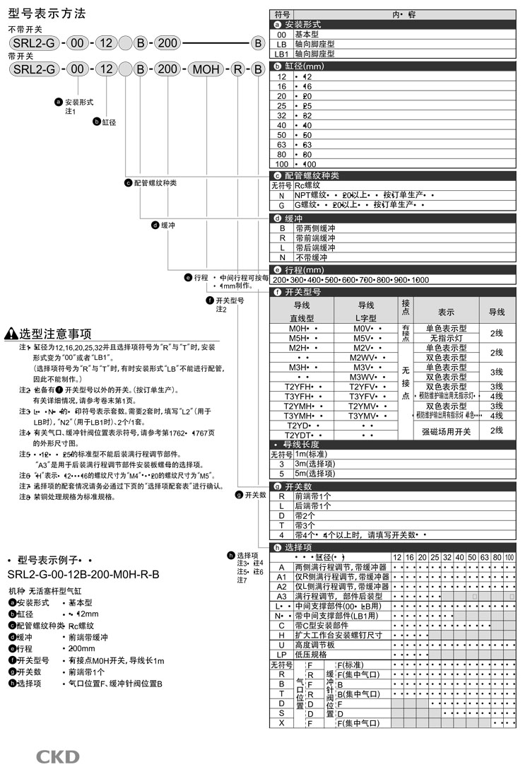 SRL2-G-00-12B-200,SRL2-G-LB-12B-200,SRL2-G-LB1-12B-200,SRL2-G-LB1-100B-700,CKD超級(jí)無(wú)活塞桿型氣缸