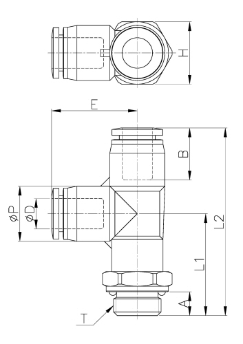 | Model | ∅D | ∅P | T | L1 | L2 | E | A | B | H(Hex) | ORIFICE | WEIGHT(g) | EA(BOX) |