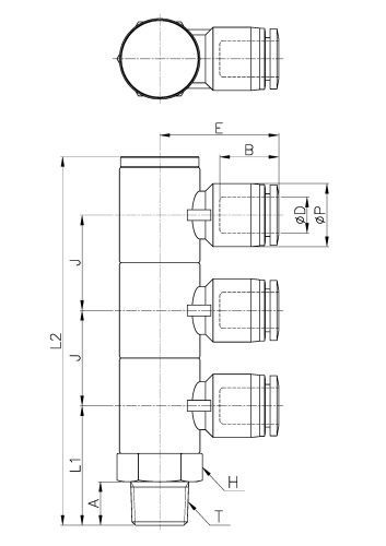 | Model | ¢D | ¢P | T | L1 | L2 | E | A | B | J | H(Hex) | ORIFICE | WEIGHT(g) | BOX(EA) |