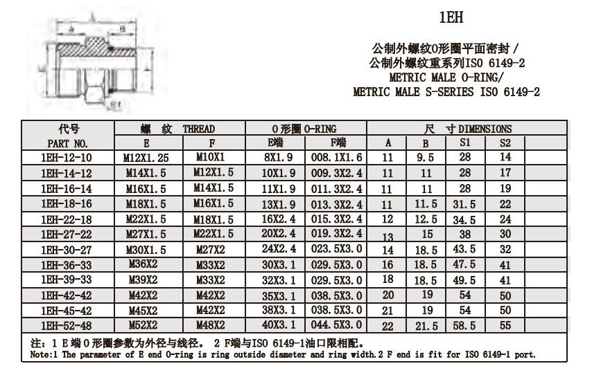 1EH9-12-10,1EH9-14-12,1EH9-16-14,1EH9-18-16,1EH9-22-18,1EH9-27-22,1EH9-30-27,平面密封接頭
