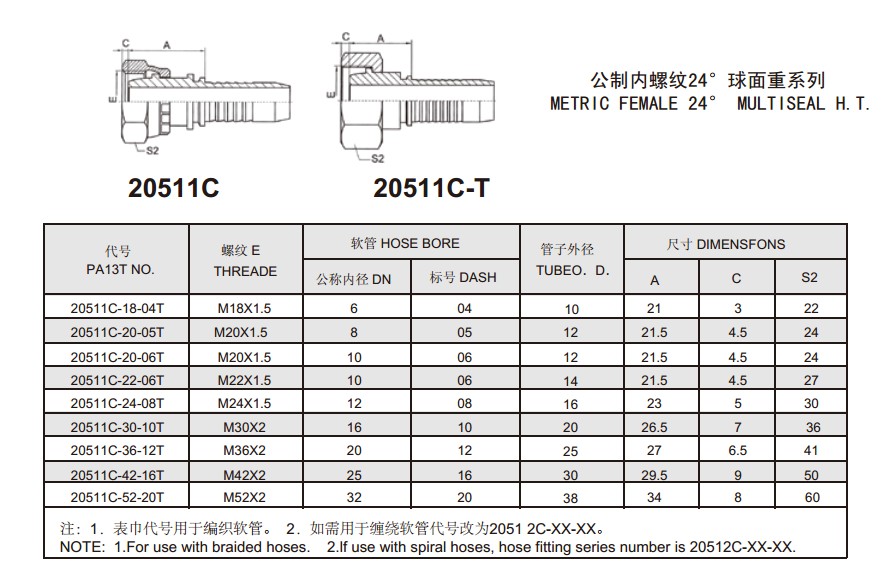 20511C-18-04T,20511C-20-05T,20511C-20-06T,20511C-22-06T,20511C-24-08T,扣壓式軟管接頭