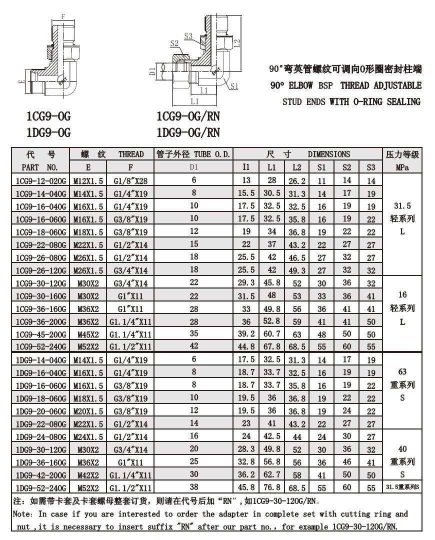 1CG9-12-020G,1CG9-14-040G,1CG9-16-040G,1DG9-30-120G,1DG9-42-200G,1DG9-52-240G,公制螺紋卡套接頭