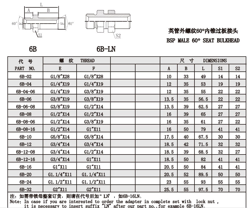 6B-02,6B-04,6B-06,6B-08,6B-10,6B-12,6B-16,6B-20,6B-24,6B-32,內(nèi)錐過(guò)板接頭