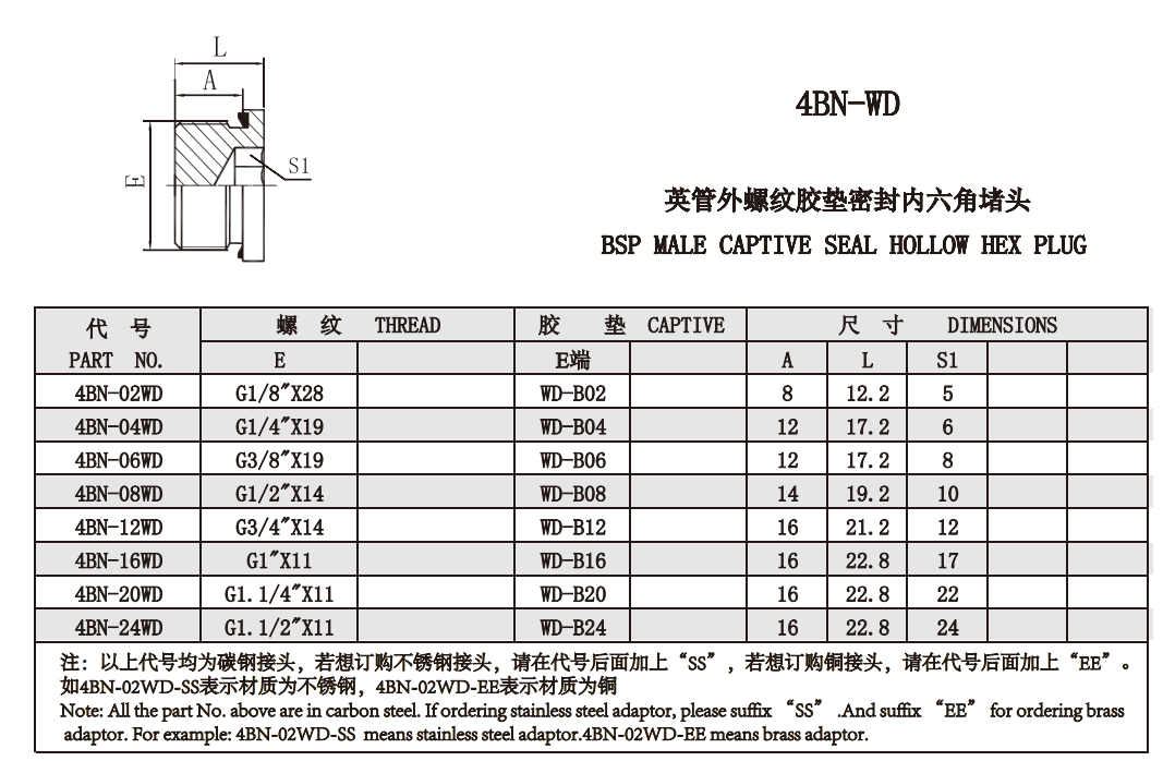 4BN-02WD,4BN-04WD,4BN-06WD,4BN-08WD,4BN-12WD,4BN-16WD,4BN-20WD,4BN-24WD,內(nèi)六角堵頭