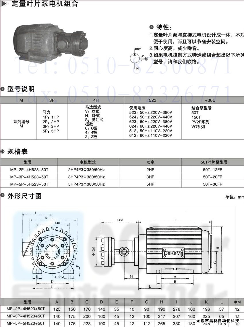 MP-3P-4H523+50T,MP-5P-5H523+50T,定量葉片泵電機(jī)組合