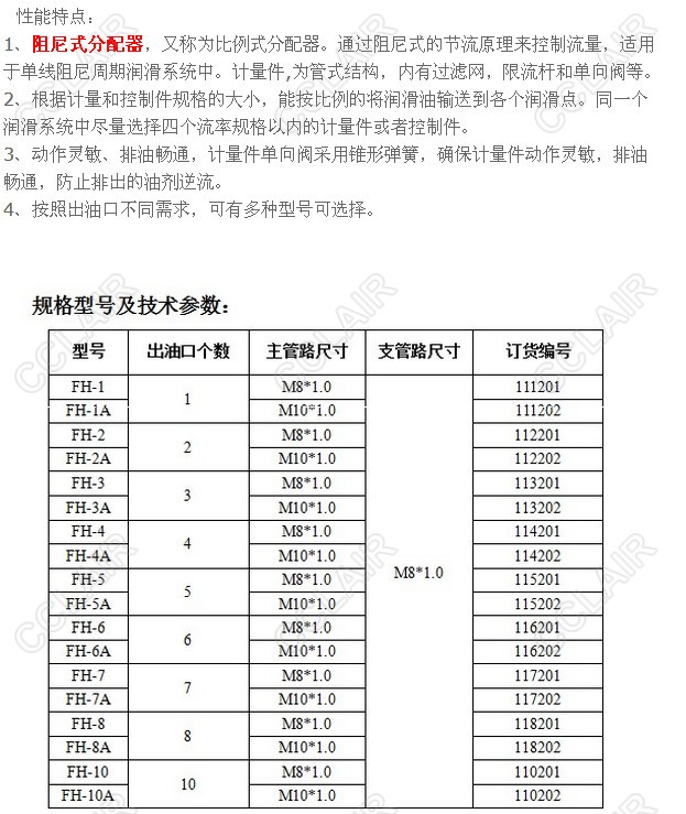 FH-1,FH-1A,FH-2,FH-2A,FH-3,FH-3A,FH-4,FH-4A,FH-5,FH-5A,FH-6,FH-6A,FH-7,阻尼式分配器 |