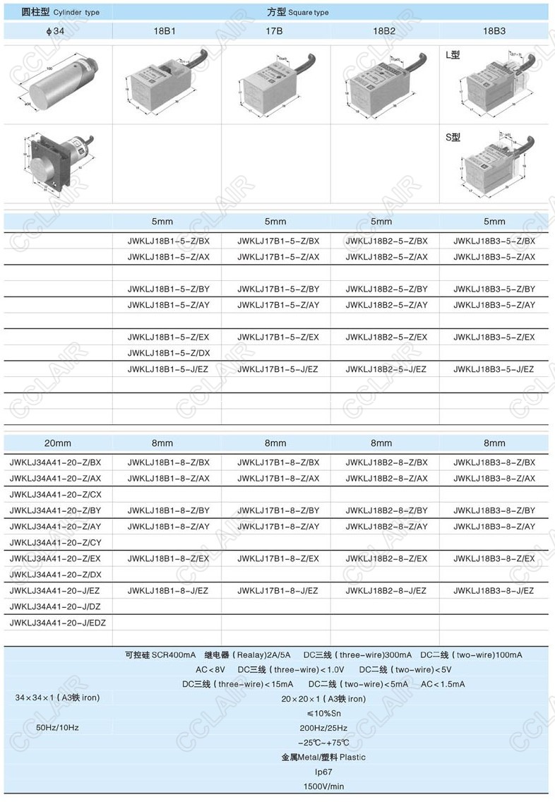 JWKLJ18B1-5-Z/BX,JWKLJ18B3-5-Z/BX,JWKLJ18B3-8-Z/EX,JWKLJ18B3-8-J/EZ,接近開(kāi)關(guān)