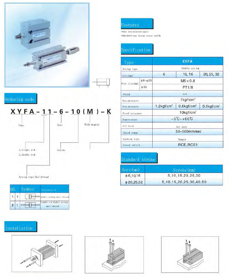 XYFA-11-6,XYFA-11-10,XYFA-11-16,XYFA-11-20,XYFA-21-6,XYFA-21-25,XYFA-21-32,Shinya氣缸