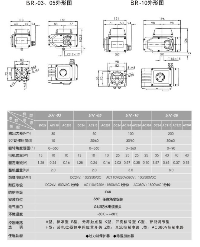 | 精小型調(diào)節(jié)型 高性能智能型模塊,采用以工業(yè)單片機(jī)為核心的智能信號采集控制模塊,集信號采集,處理,反饋,控制于一體。彩先進(jìn)混合集成電路,穩(wěn)定性好,控制精度高達(dá)1/1000。樹脂澆鑄密封,防塵,防震,抗干擾,體積小,安裝方便。 BR系列產(chǎn)品屬于回轉(zhuǎn)型電動執(zhí)行機(jī)構(gòu),S、W、P、A型可通過外接電源的控制箱或W、P型外部輸入信號、電腦DCS、電腦PLC等信號源實現(xiàn)遠(yuǎn)控和近控自動功能。 該產(chǎn)品充分吸收并運用國外先進(jìn)技術(shù)制造而成,內(nèi)部結(jié)構(gòu)多采用進(jìn)口材料組裝,整機(jī)外殼采用鋁合金壓鑄件做成。接線簡單、性能穩(wěn)定、耗能小、外形美觀、重量輕、體積小、便于維修、安裝簡單、可手電動等多方面的優(yōu)越功能。 可適合AC24V、AC110V、AC220V、AC380V、DC24V、DC220V等外接電源。 輸出開關(guān)時間可選擇5S、15S、30S和60S等多種. |